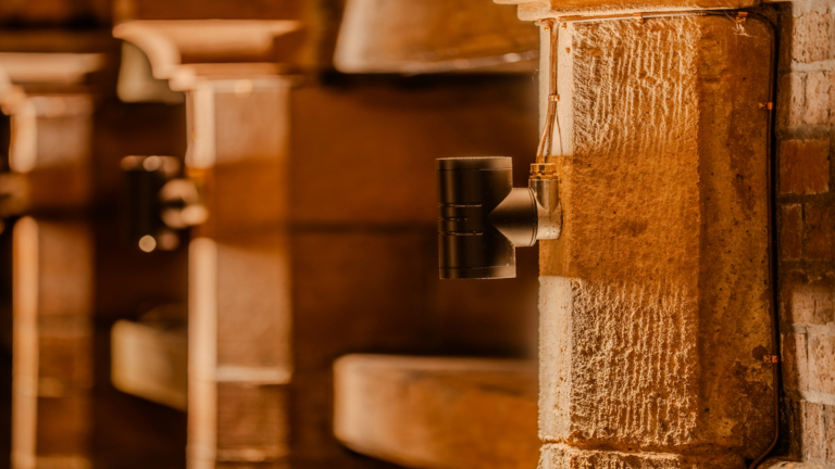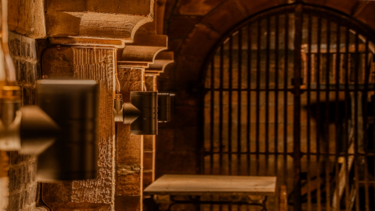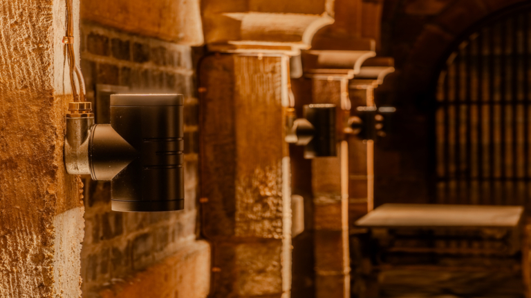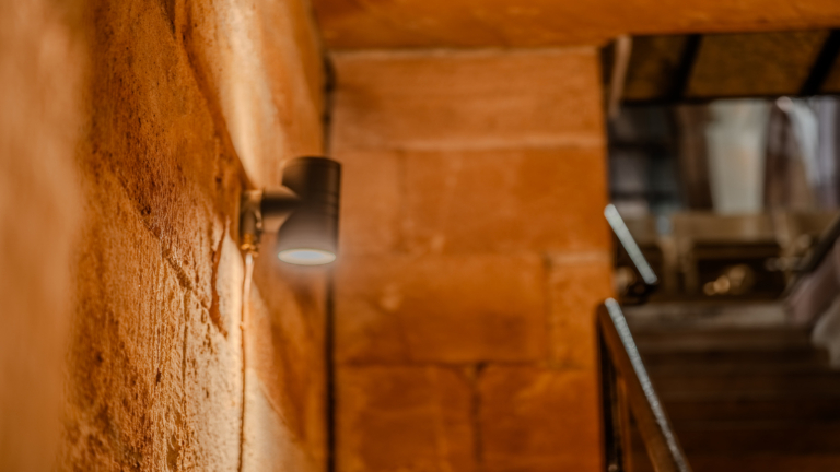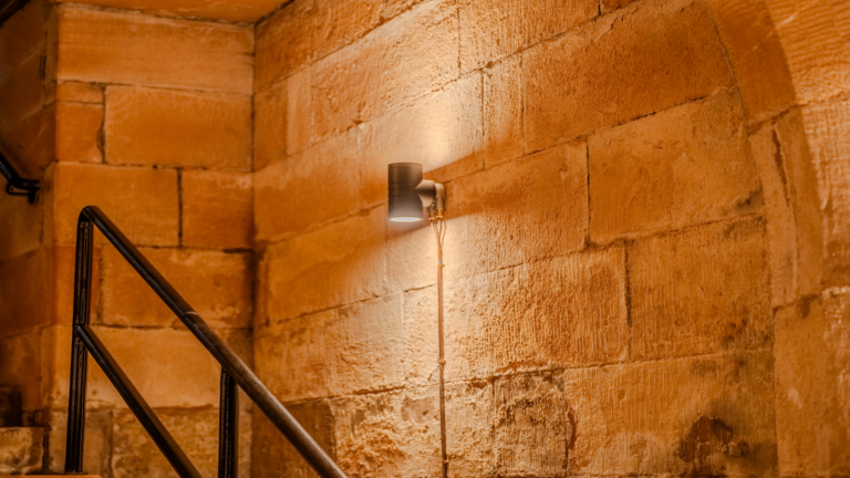 Mounted directly onto the existing masonry, the fittings were installed with minimal disturbance to the stone walls — a key requirement in this sensitive heritage environment.
