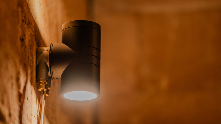 The downward light gently illuminates the walkway, ensuring safe access and guiding visitors through the space without glare.