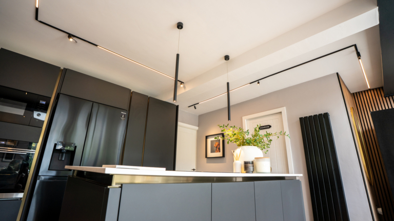 The installation has completely redefined the look and feel of the kitchen. The slimline track, with its mix of directional spotlights and subtle neon linear lighting, offers a perfect blend of style and function. The homeowner praised the system’s flexibility, noting how easy it is to adjust the spots for different tasks while enjoying the ambient glow from the neon line.