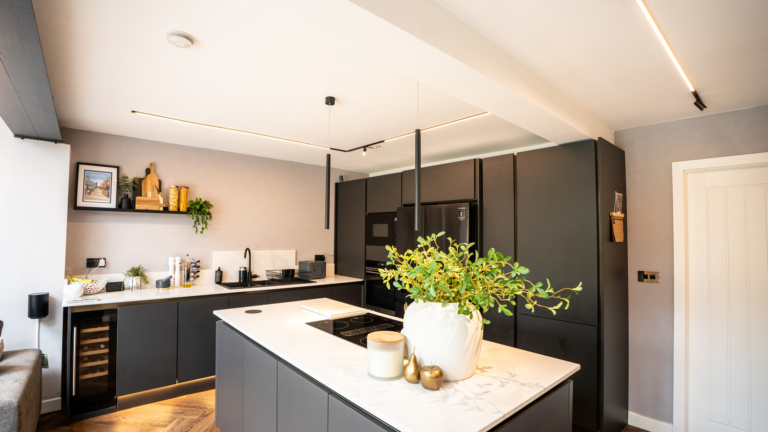 A homeowner in search of a sleek, contemporary lighting solution recently transformed their kitchen with Ansell Lighting’s Primo Mini 24V Track System. The brief called for a modern yet practical lighting design that would enhance the room’s aesthetics, provide flexible illumination, and integrate seamlessly with the minimalist interior.