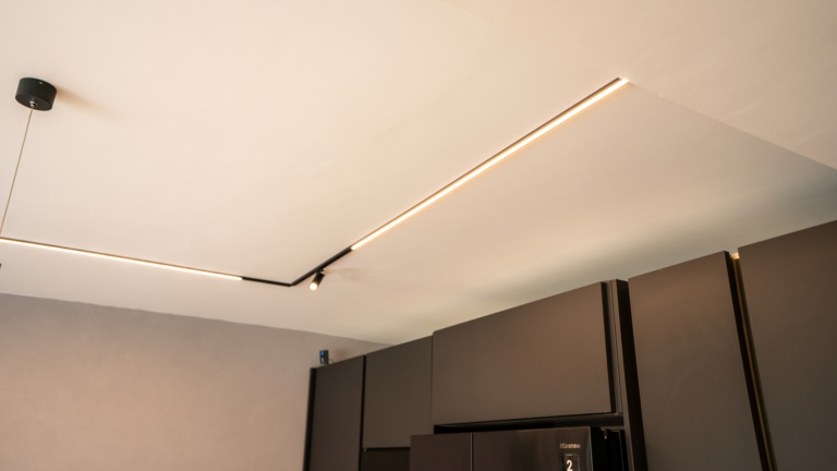 To complement the spotlights, the Primo Mini Neon Line was integrated along the track, delivering a continuous, diffused line of light. This provided ambient illumination, balancing the sharper beams from the spots and creating a layered lighting effect ideal for both everyday use and entertaining.