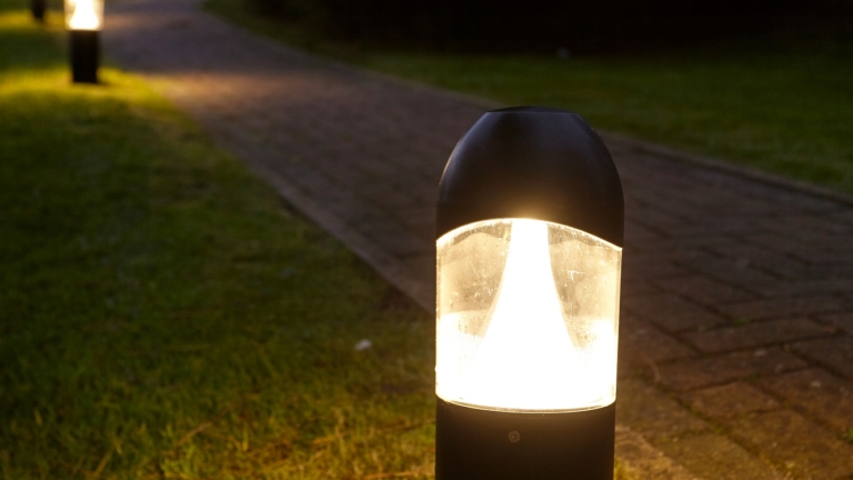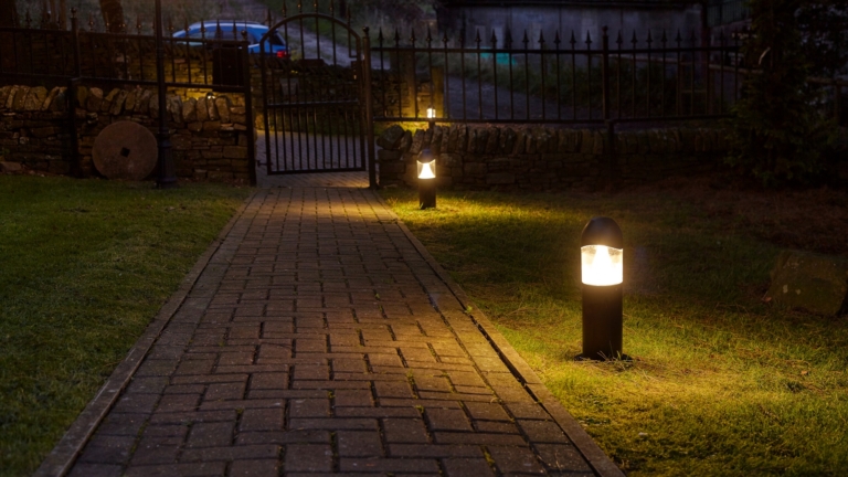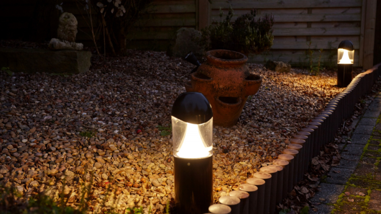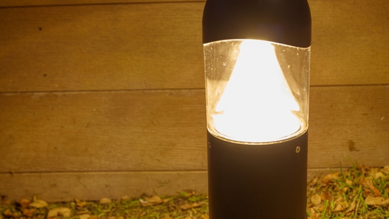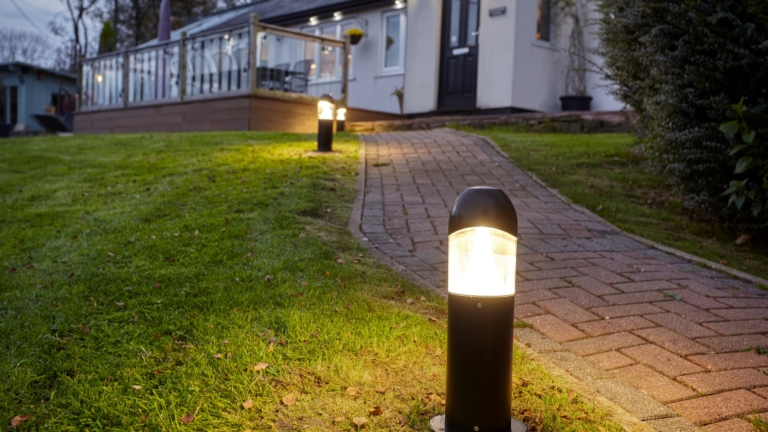 The Leo bollard has a white reflector with clear polycarbonate diffuser and is available in three height sizes, 450mm, 750mm and 1000mm. They are ideal for residential and commercial settings such as this one, and the CCT switch gives users the choice of either warm white 3000k or cool white light 4000k.