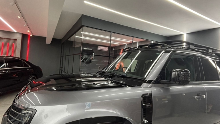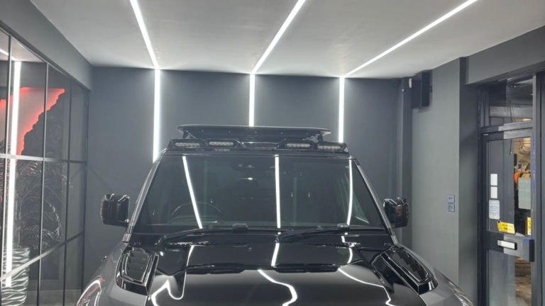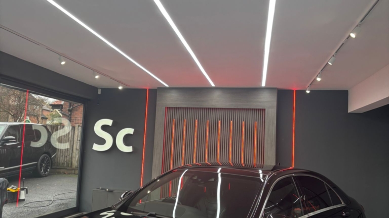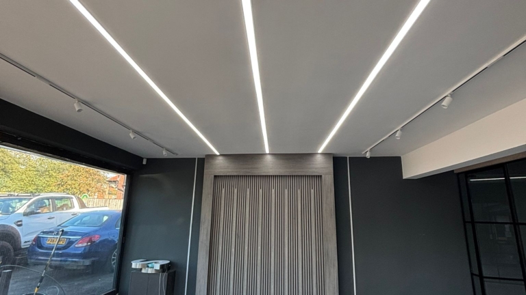 The showroom’s existing lighting was no longer fit for purpose. The old grid ceiling and failing LED panels created inconsistent illumination, leaving the space looking tired and underwhelming — especially when compared to the quality of the vehicles being showcased.