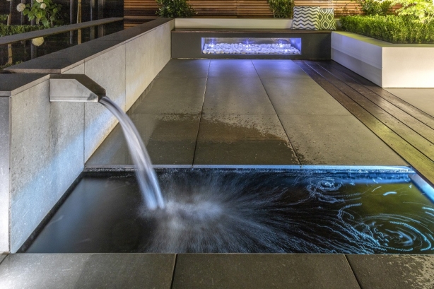Along the walkways around the garden Parona LEDS have been installed which give a beautiful feature light after sunset. The compact low level circular LED can be used as a pathway light which gives a downward light spill. It has a die-cast aluminium construction with graphite paint finish which ties in with the other lighting used around the outside space.