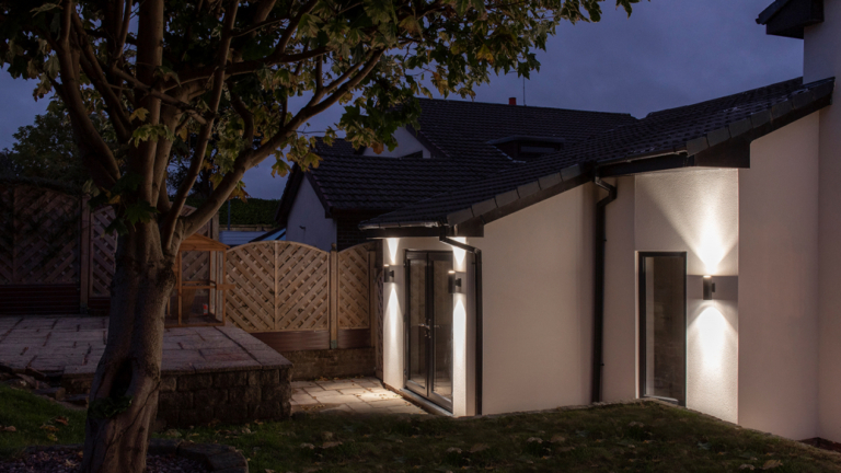 As with all homes now being refurbished, the external lighting is very much a part of the whole lighting solution in that it allows the exterior to form a valuable part of the overall space, allowing the homeowners the opportunity to extend the usage of the external garden into the evening as well as providing both safe access around the property and to offer the benefits of security.