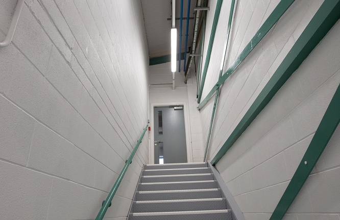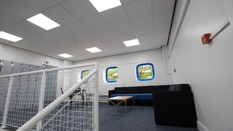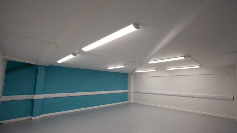 Firstly, the Tornado IP65 non-corrosive LED sealed fitting range had been selected and then fitted within the school’s workshops, having suitability for industrial type applications and ancillary areas, with an LED performance which allows point-for-point replacement of the older fluorescent based fittings. Having a unique luminaire fixing clip design allowing the option for BESA box installation and with lockable heavy-duty stainless-steel clips suppled as standard, giving added safety and security, very important in this type of educational building. With a highly efficient performance at a colour temperature of 4000K, and L70 at 50,000 hours in addition to the option of smart, dimming and sensor options, as well as a maintained emergency version, means extreme flexibility in potential locations for installation.